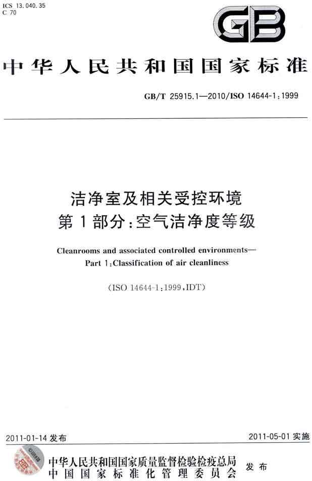 潔凈室及相關(guān)受控環(huán)境第1部分:空氣潔凈度等級 GB/T25915.1-2010