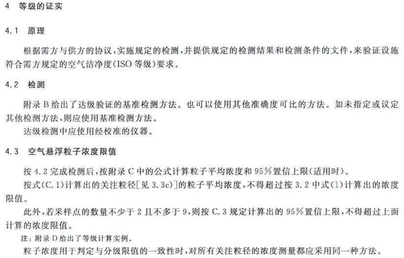 GB/T25915的本部分劃分潔凈室及相關(guān)受控環(huán)境的空氣潔凈度等級僅依據(jù)其內(nèi)的空氣懸浮粒子濃度,該濃度系指粒徑大于或扥估閾值(低限)粒徑為0.1μm~5μm規(guī)定粒徑以外粒子總數(shù)的潔凈度等級。但可以用U描述符合M描述符,分別表述超微粒子(<0.1μm)和大粒子(>5μm)的總數(shù)。