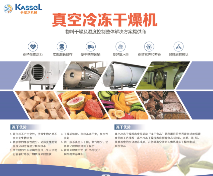 卡塞爾機(jī)械(浙江)有限公司為卡塞爾集團(tuán)成員企業(yè),是一家專業(yè)提供真空冷凍干燥設(shè)備整體方案的供應(yīng)商:以“凍干機(jī)”為核心產(chǎn)品,形成了針對果蔬、肉類(寵物食品)、速溶方便食品(凍干粉)、美容及生物制品、實(shí)驗(yàn)室凍干、家用凍干及其它等七大凍干產(chǎn)品生產(chǎn)線的針對性解決方案,讓低成本、高效率、多用途的一站式凍干服務(wù)成為可能。